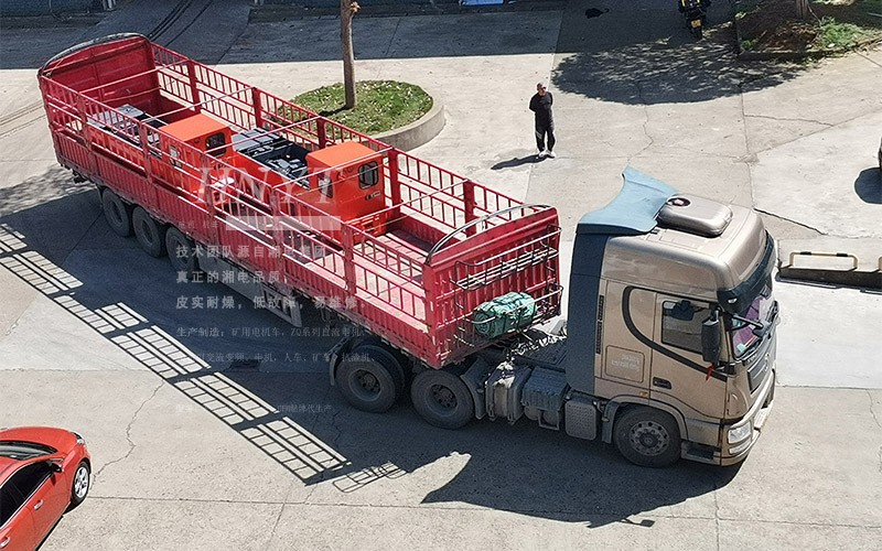 河南客戶采購的8噸礦用湘潭電機車裝車發(fā)貨。